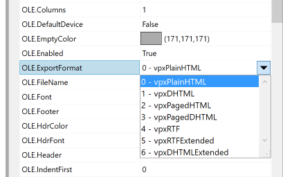 OLE Enumerated Properties dropdown