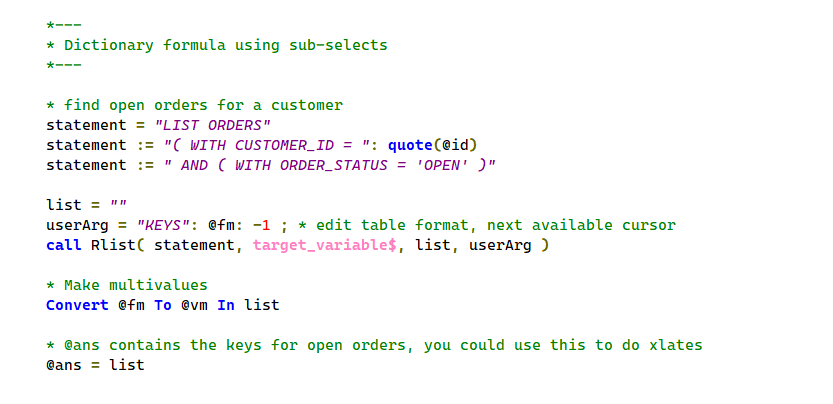 Keys = Xlate(‘MYTABLE’,’%RECORDS%’, ”, ‘X’)